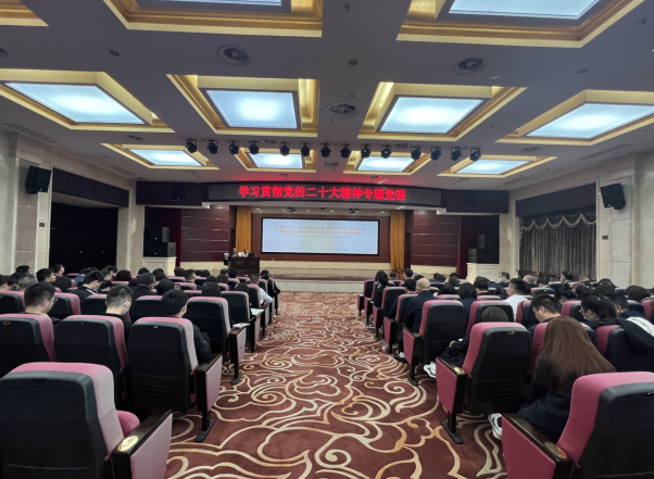 為學(xué)習(xí)好、宣傳好、貫徹好黨的二十大精神,深入貫徹落實黨的二十大部署要求,迅速在支部黨員中掀起學(xué)習(xí)熱潮,11月9日上午,機關(guān)黨支部聯(lián)合置業(yè)公司黨支部、資產(chǎn)管理公司黨支部、資產(chǎn)經(jīng)營分公司黨支部邀請江西師范大學(xué)道德與倫理研究中心副主任、江西師范大學(xué)馬克思主義學(xué)院副教授、碩士研究生導(dǎo)師,江西省統(tǒng)戰(zhàn)理論研究會理事邵曉秋教授為支部黨員、發(fā)展對象、入黨積極分子講授《黨的二十大是全面建設(shè)社會主義現(xiàn)代化國家的政治宣言和行動綱領(lǐng)——學(xué)習(xí)貫徹黨的二十大精神》專題黨課。